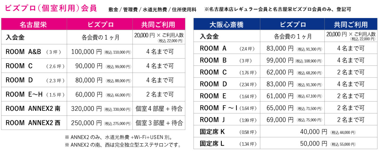 また、コワーキングスペース&オフィス使用・住所利用可・登記可・24時間利用個室有。