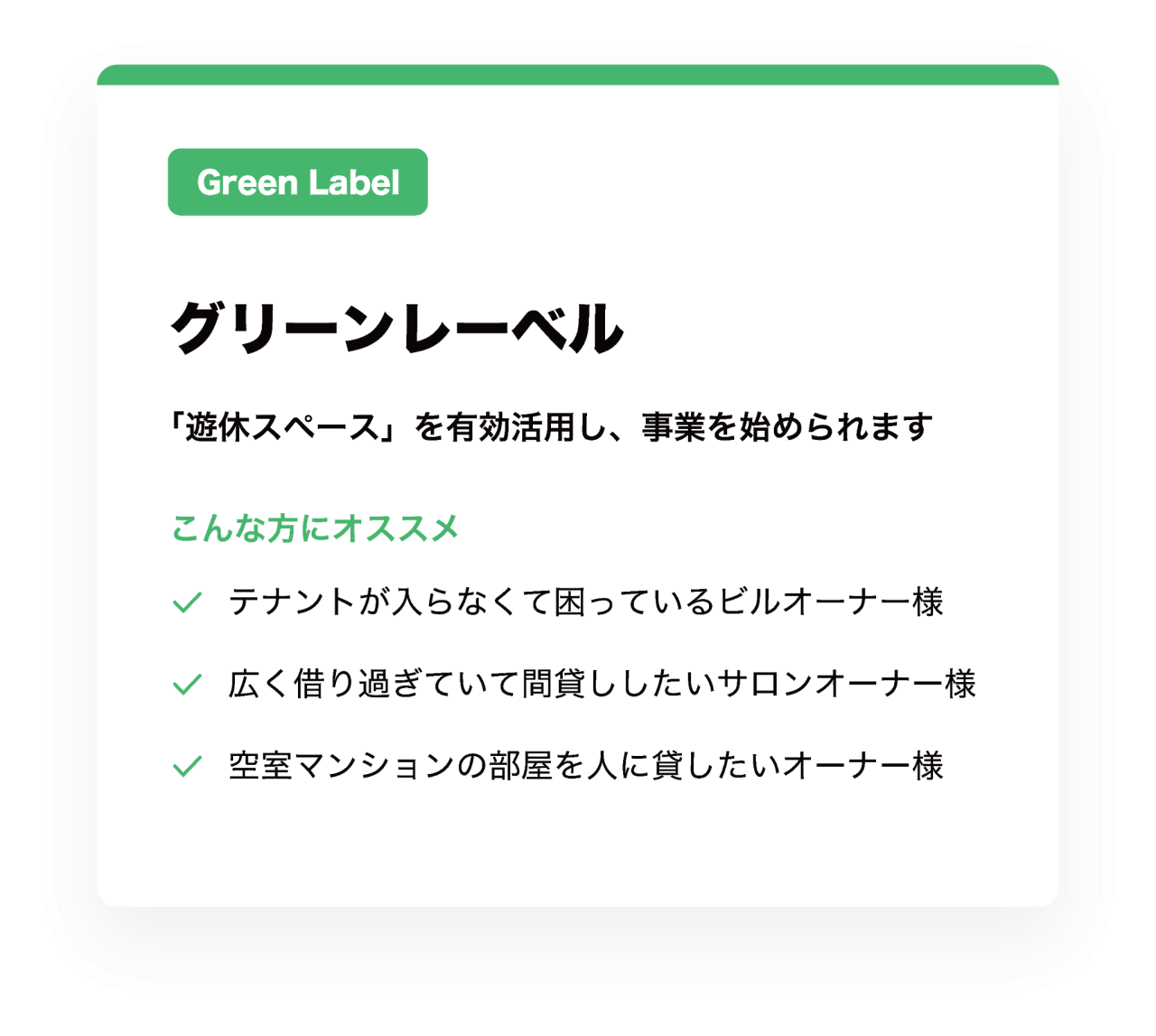 遊休スペースを活用して人件費も水道光熱費も極力使用せず運営するグリーンレーベルと、