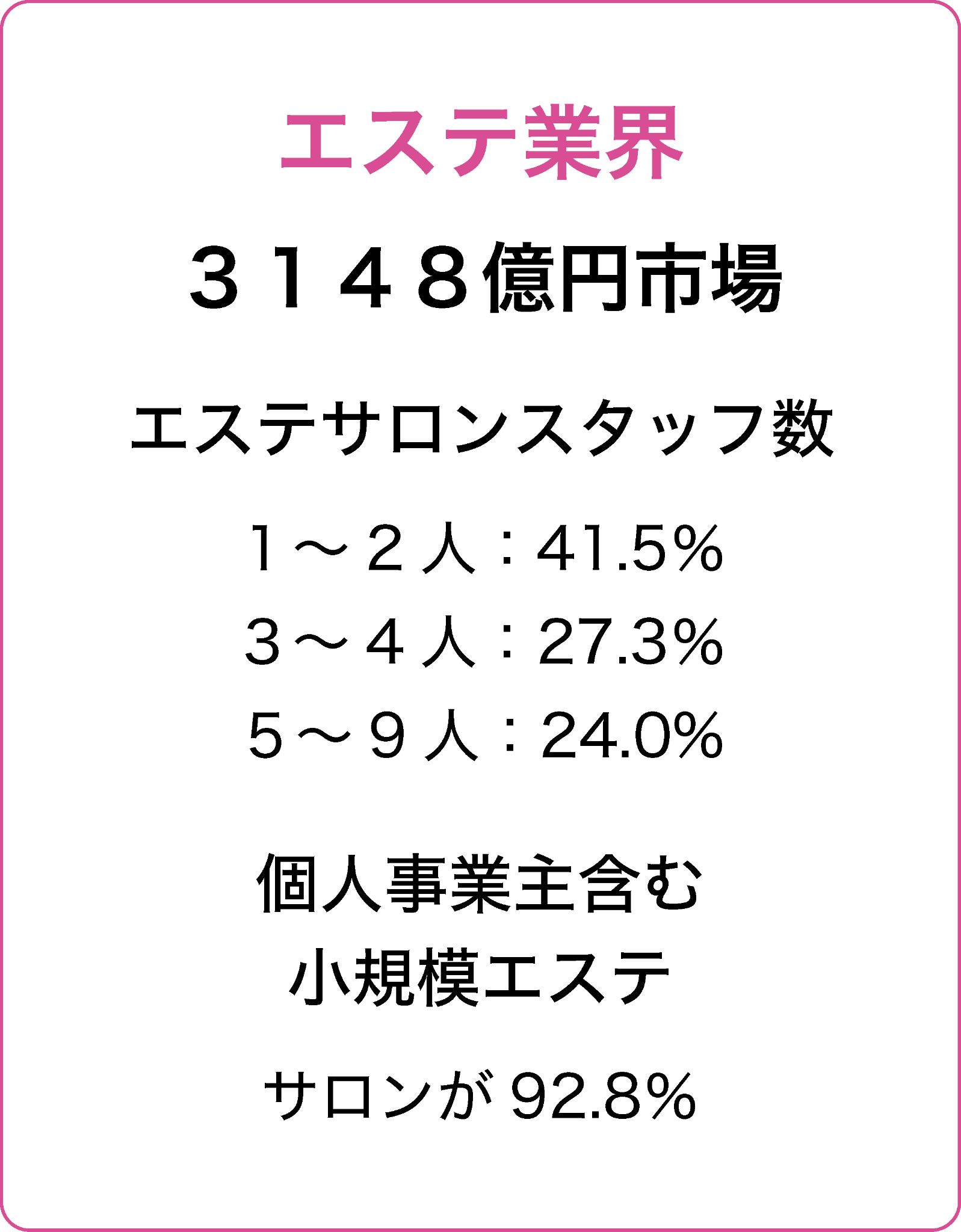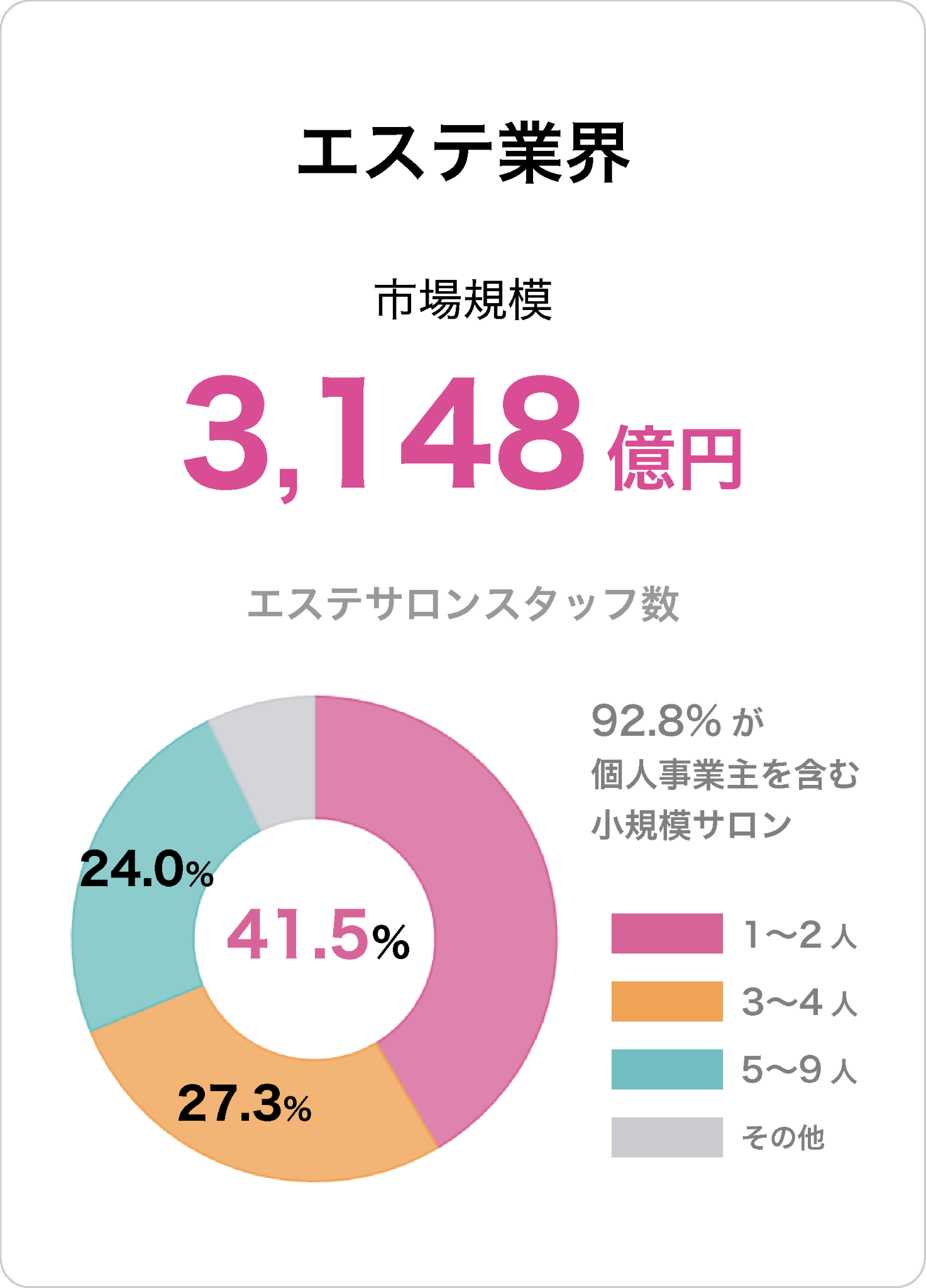 ・エステ業界では個人事業主及び少人数経営が大多数市場。
