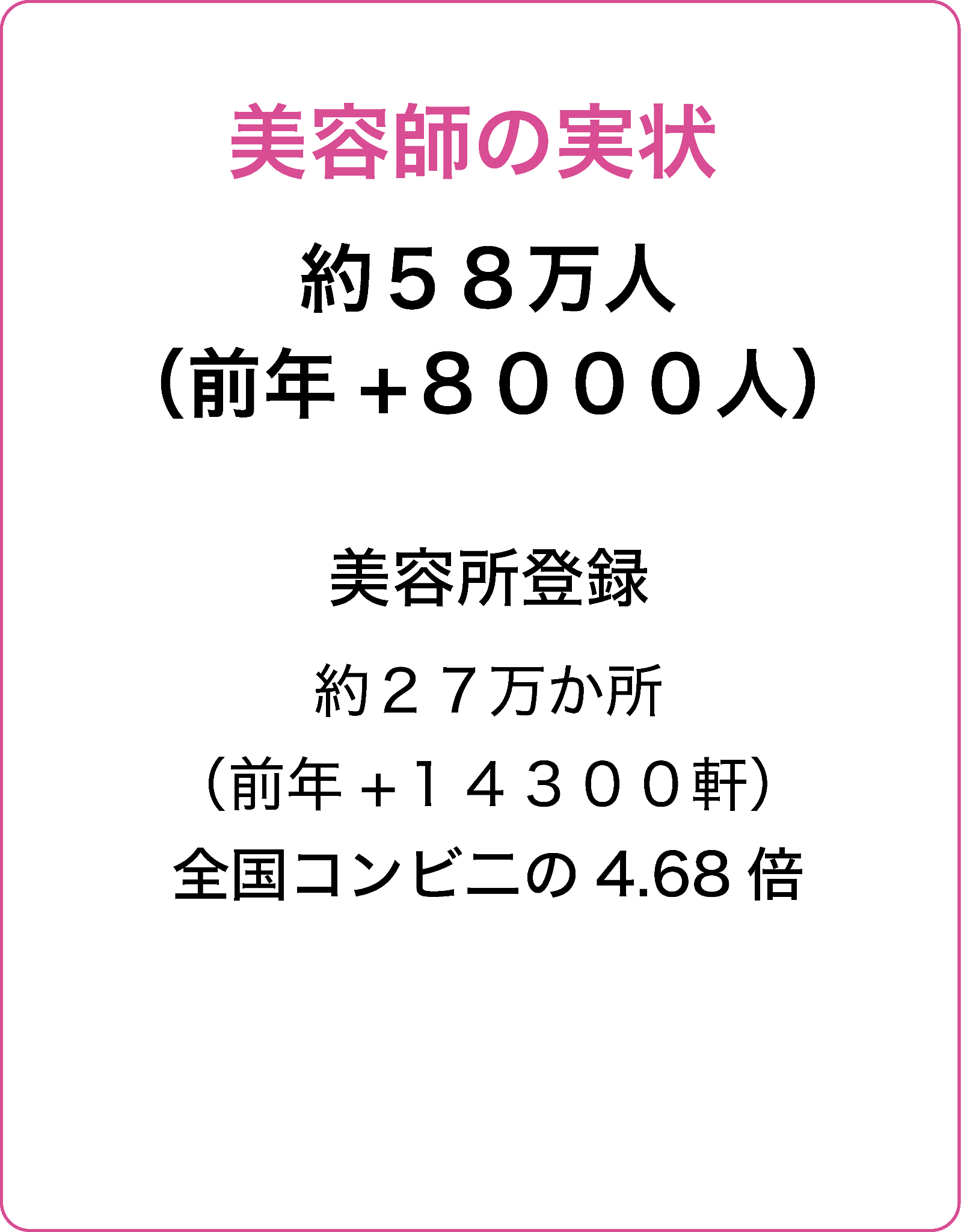 ・美容業界の実状は美容師数、美容所数は増加しているが、働きやすさ・自分らしい仕事・人間関係